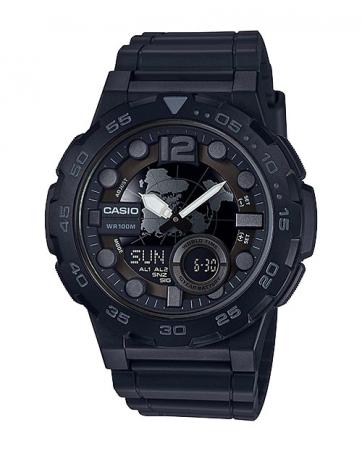 GT260 CASIO STANDARD AEQ-100W-1BV Analog Digital Watch | World Time Map