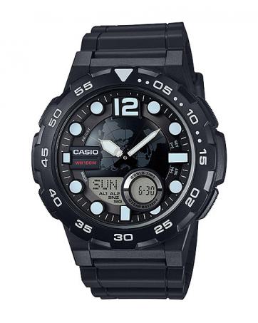 GT425 CASIO STANDARD AEQ-100W-1AV Analog Digital Watch | World Time Map