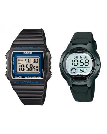 GT584 CASIO STANDARD W-215H-8AV & LW-200-1BV Digital Couple Watch