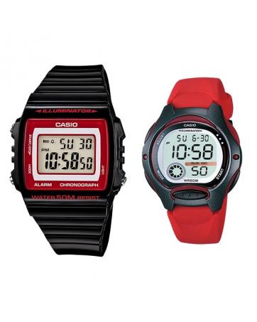 GT585 CASIO STANDARD W-215H-1A2V & LW-200-4AV Digital Couple Watch