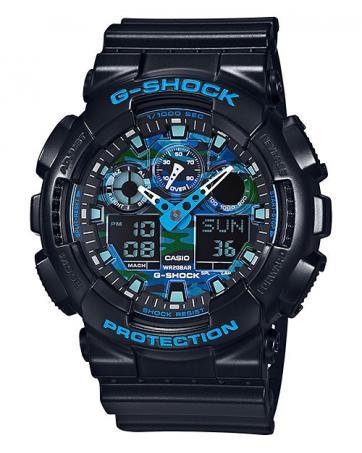 GT714 CASIO G-SHOCK GA-100CB-1A Analog Digital Watch | Blue Tone Camouflage