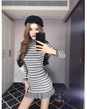 EW20312 Stylish Stripe Dress Grey