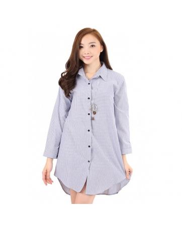 QA-205 Women Stripe Long Top Blue Grey