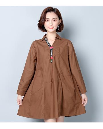 GW2032 Casual Long Top Brown