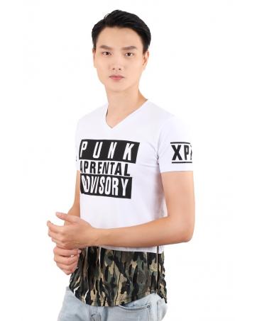 QA-321 Men V Neck T Shirt White