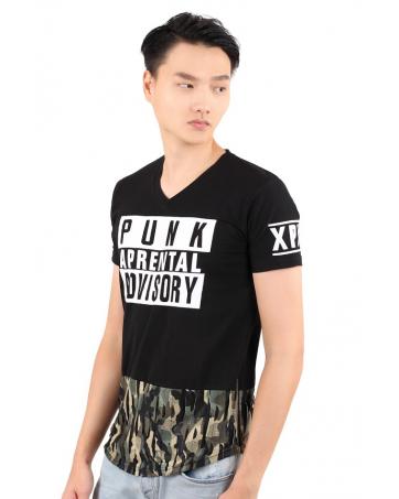 QA-321 Men V Neck T Shirt Black