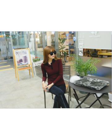KF524 Long Sleeved Collar T-Shirt Red