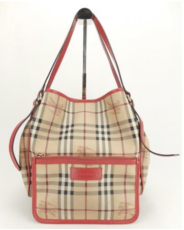 PB6010 Burberry Small Haymarket Centerbury Tote (Red)