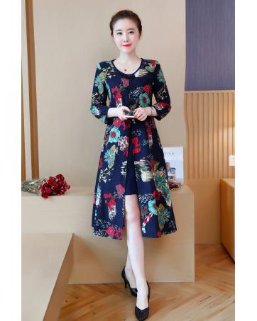 VW12208 Classic Floral Cheongsam Blue