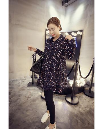 KF563 Lovely Flower Long Sleeved Blouse Black