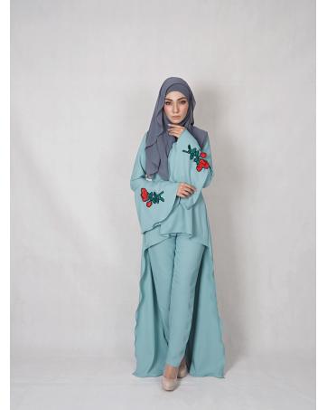 SW4834 Rose Set Blouse & Pants Dark Green