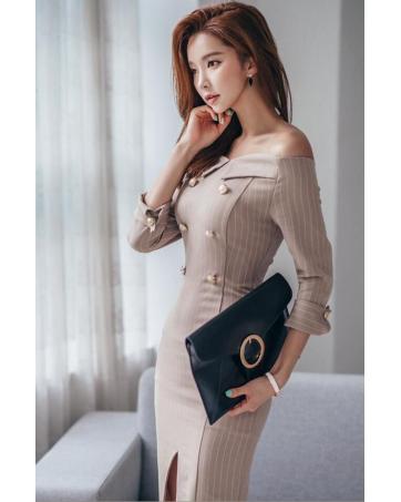 BM70335 Fashion Off-Shoulder Dress As Picture
