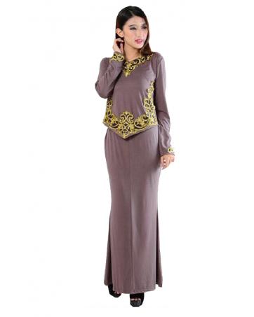 JW5024 Baju Kurung With Embroidery Coffee