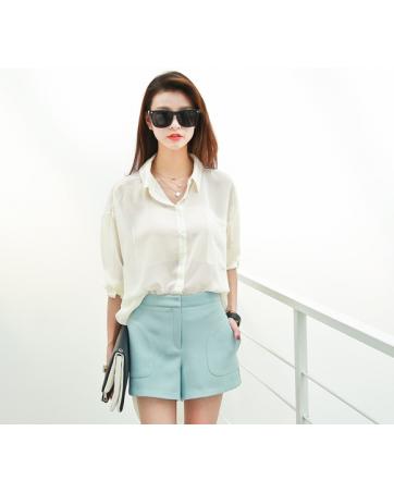JW5027 Chiffon Fishtail Blouse White