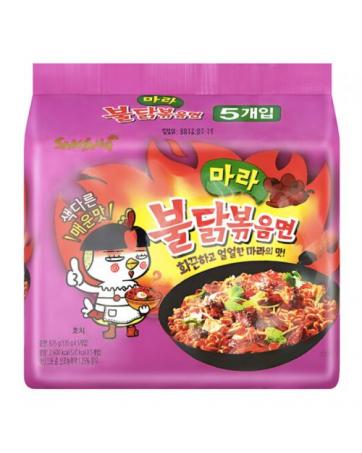 MALA BULDAK BOKKEUMMYEON (HOT CHICKEN FLAVOR RAMEN MALA) This is a differentiated ‘Mala(numbing and spicy)’ flavor of BULDAK BOKKEUMMYEON(HOT CHICKEN FLAVOR RAMEN). It features a spicy numbing stir-fry noodle with Chinese ‘Mala’ sauce. It’s a combination of numbing spicy taste and the original flavor of Hot Chicken. To prepare, add noodle block and dry sachet to 600ml boiling water and cook for 5 minutes. Drain, saving 120ml liquid. Add in sauce and saved liquid. Stir-fry over high heat for 30 seconds. Stir and enjoy!