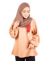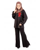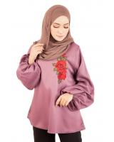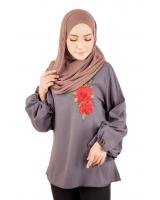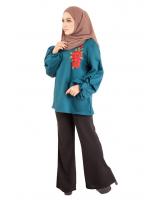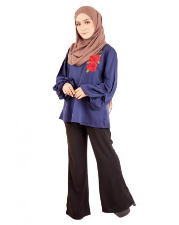 QA-398 Women Floral Embroidery Blouse Navy Blue