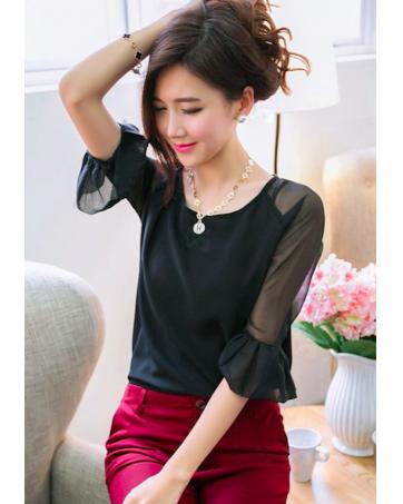 BM70970 Fashion Chiffon Top Black