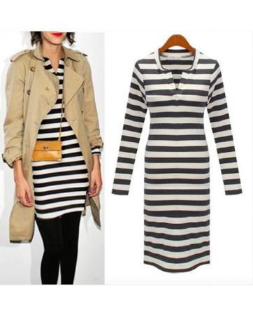 BM70987 Fashion Stripe Dress Grey White