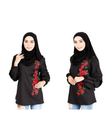 QA-413 Women Rose Embroidery Blouse Black