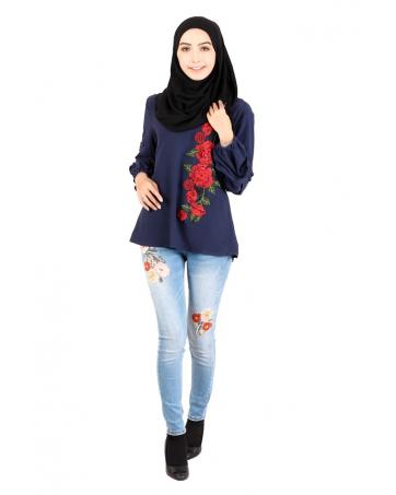 > Sold Out Items > QA-413 Women Rose Embroidery Blouse Navy Blue