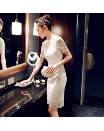BM71031 Vintage Lace Ribbon Back Dres White