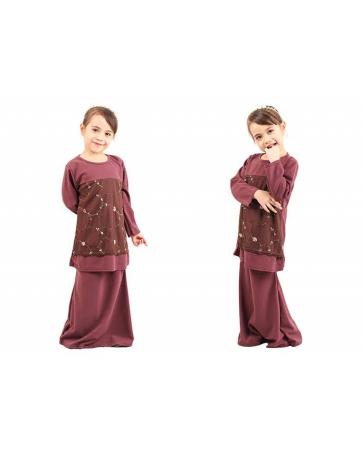 QA-419 Kids Modern Lace Baju Kurung Dust Purple