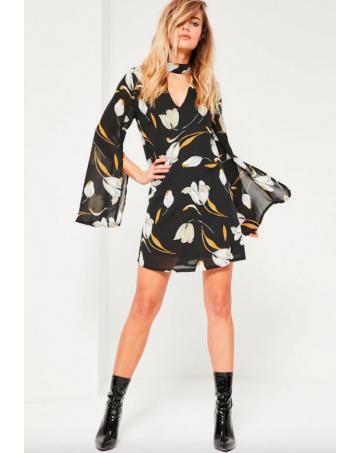 BM71070 Choker Neck Chiffon Dress Black