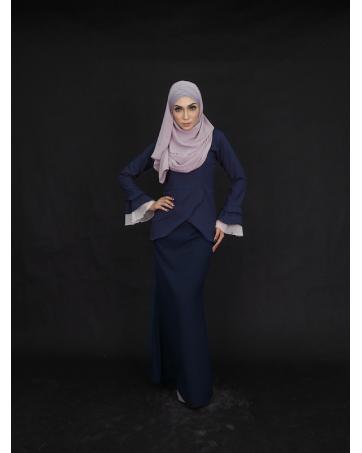 WH7635 Ruffle Sleeves Baju Kurung Dark Blue