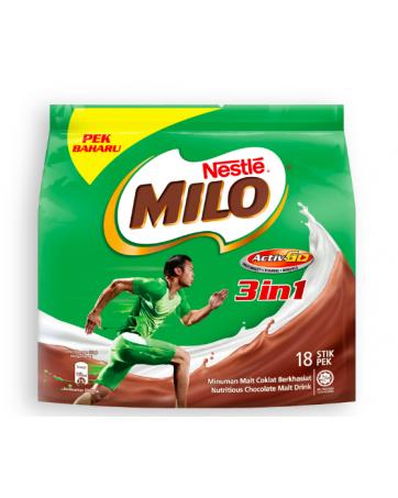MILO 3in1 with ACTIV-GO contains PROTOMALT , Vitamin & Mineral , a unique malt and barley extract. It contains a source of nutrient that play a role in efficient energy release, muscle function and bone maintenance - essential functions for physical activity in children. MILO 3in1 with 135 kcal per serving (33g) contributes to the energy requirements of adults in a day as part of a balanced diet.