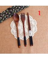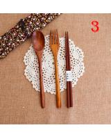3pcs/set Wood Fork Spoon Chopsticks Set
