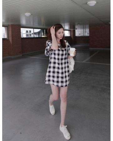 BM71109 Ruffle Sleeves Dress Checker