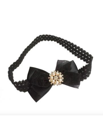 BS909 Pearl Bow Baby Hairband Black