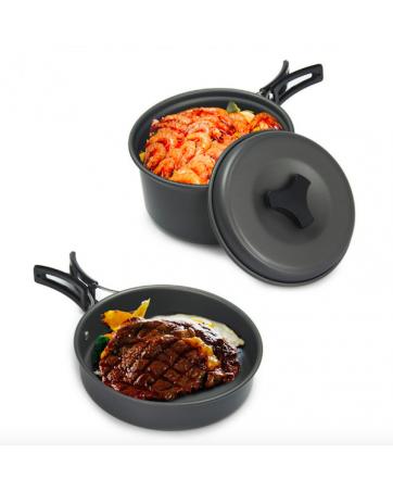 - The pot and frying pan are made of anodised aluminum, which makes it solid and light.