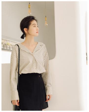 VW12341 Stylish Stripe Top Brown
