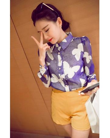 BM71122 Butterfly Print Collar Shirt Blue