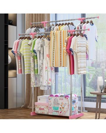 - Double Pole Adjustable Stainless Steel Cloth Hanger and Organizer Rack