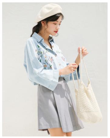 GW2265 Charming Embroidery Top Blue