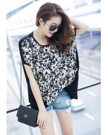 WT21745 Fashion Flower Top Black