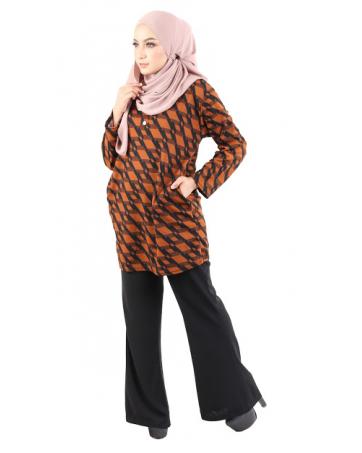 QA-490 Muslimah Printed Blouse Brown