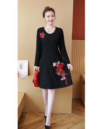 FF-105 Pretty Embroidery Dress (Plus Size) Red