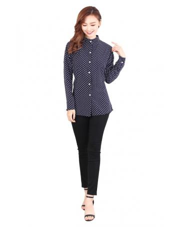 QA-511 Women's Mandarin Collar Top Navy Blue