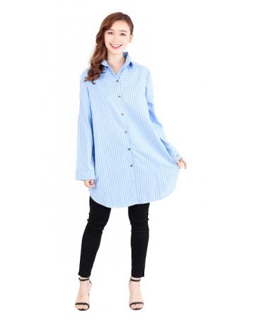 QA-514 Women's Striped Blouse Baby Blue