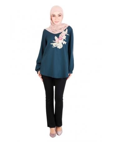 QA-523 Women's Floral Embroidery Blouse Ocean Green