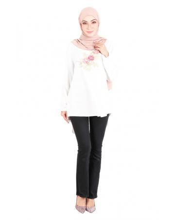 QA-523 Women's Floral Embroidery Blouse White