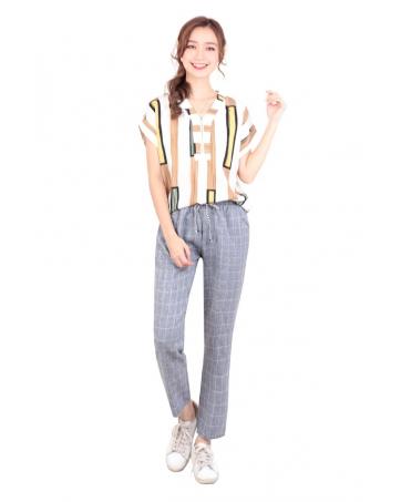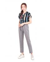 QA-524 FIT CHECKED PANTS BLUE GREY