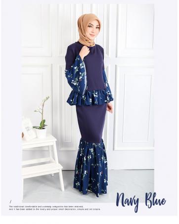 QA-549 WOMEN'S FLORAL KURUNG NAVY BLUE