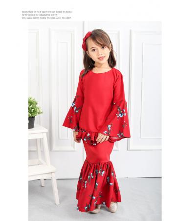 QA-550 SWEET KIDS FLORAL KURUNG RED