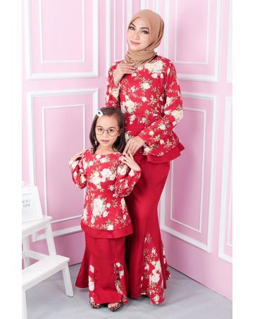 > Sold Out Items > QA-553 WOMEN'S FLORAL MODERN KURUNG RED
