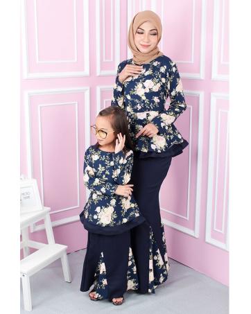 QA-554 KIDS FLORAL KURUNG NAVY BLUE