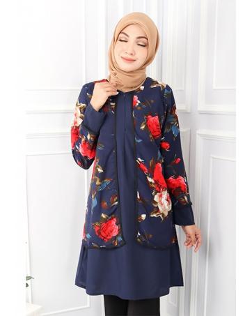 QA-558 WOMEN'S FRONT ZIP BLOUSE NAVY BLUE